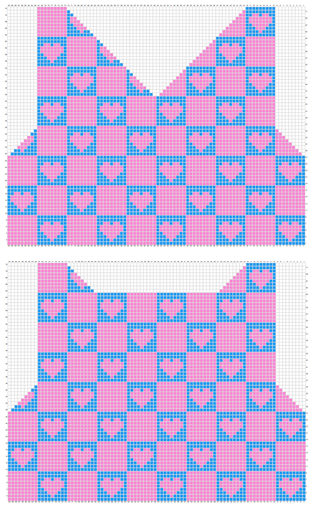 4. do a row with 3 squares and half a square in the middle to make the v neck